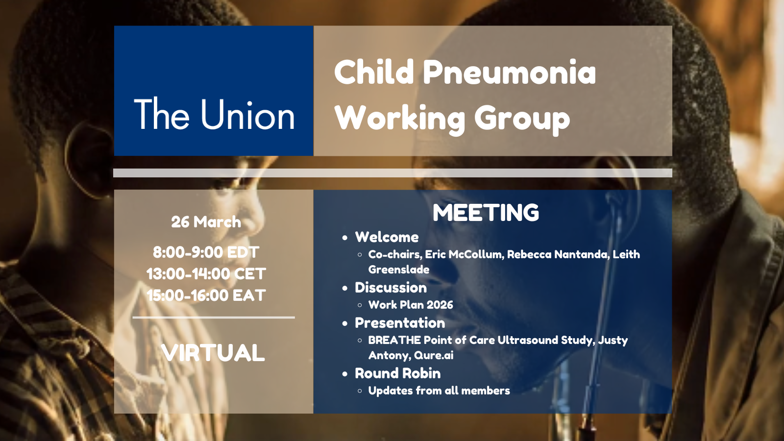Join The Union Child Pneumonia Working Group on 26 March 2026 at 8amEDT for the first meeting of 2026!